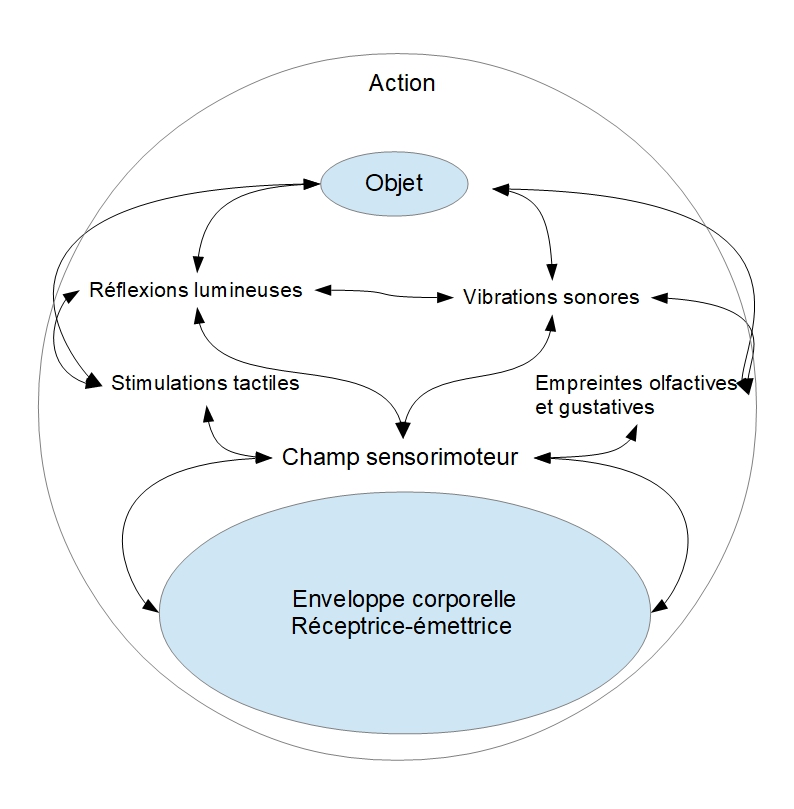 L’interaction constante entre le corps, l’objet et l’action peut être schématisée de cette manière :