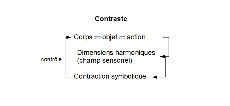 Nous nous inspirons ici de l’analyse harmonique en mathématique, qui procède par la décomposition d’un champ périodique en valeurs, elles-mêmes réductibles à une même valeur fondamentale (sur le modèle des fréquences d’onde). Nous trouvons judicieux de l’appliquer ici pour exprimer la réductibilité du champ sensoriel à l’activité du corps qui en fait l’expérience. Mais aussi, sa modélisation permet de faire un pont avec le champ symbolique, en opérant un réseau d’analogie quant au emprunts que le symbolique fait à la mémoire sensorielle.